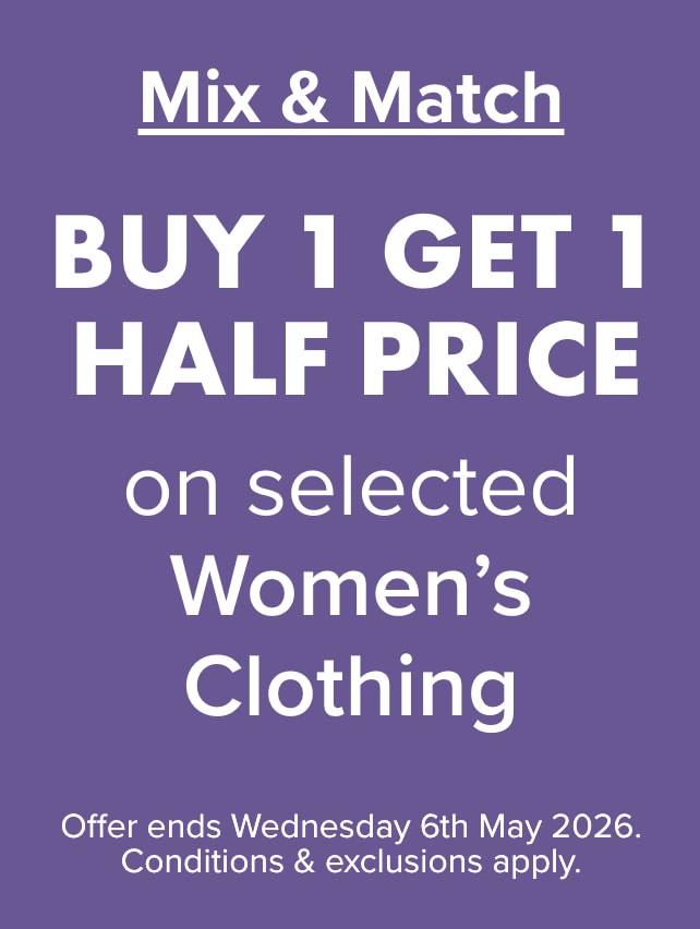 Offer ends 22nd April 2026. Excludes Champion, High Street Clothing, Nursery, Products In '2 For' Deals, Superdeals & Clearance Items. Discount will be applied to the lowest priced item. Qualifying purchase must be made in a single transaction. Not available in conjunction with any other offer.