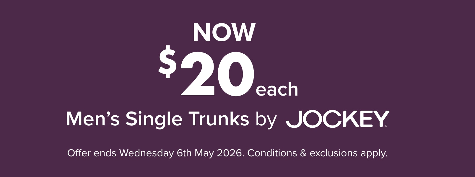 Offers end Wednesday 22nd April 2026. Excludes Women’s Lingerie, Men’s Underwear, Laidlaw + Leeds Suit Package, Accessories, Sleepwear, Socks and Clearance Items. Qualifying purchase must be made in a single transaction. Not available in conjunction with any other offer.