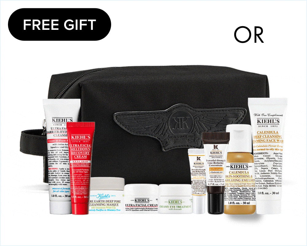 FREE Kiehl's 10-piece Gift of your choice in either Skin Renewal or Skin Soothing when you spend $150 or more on Kiehl's