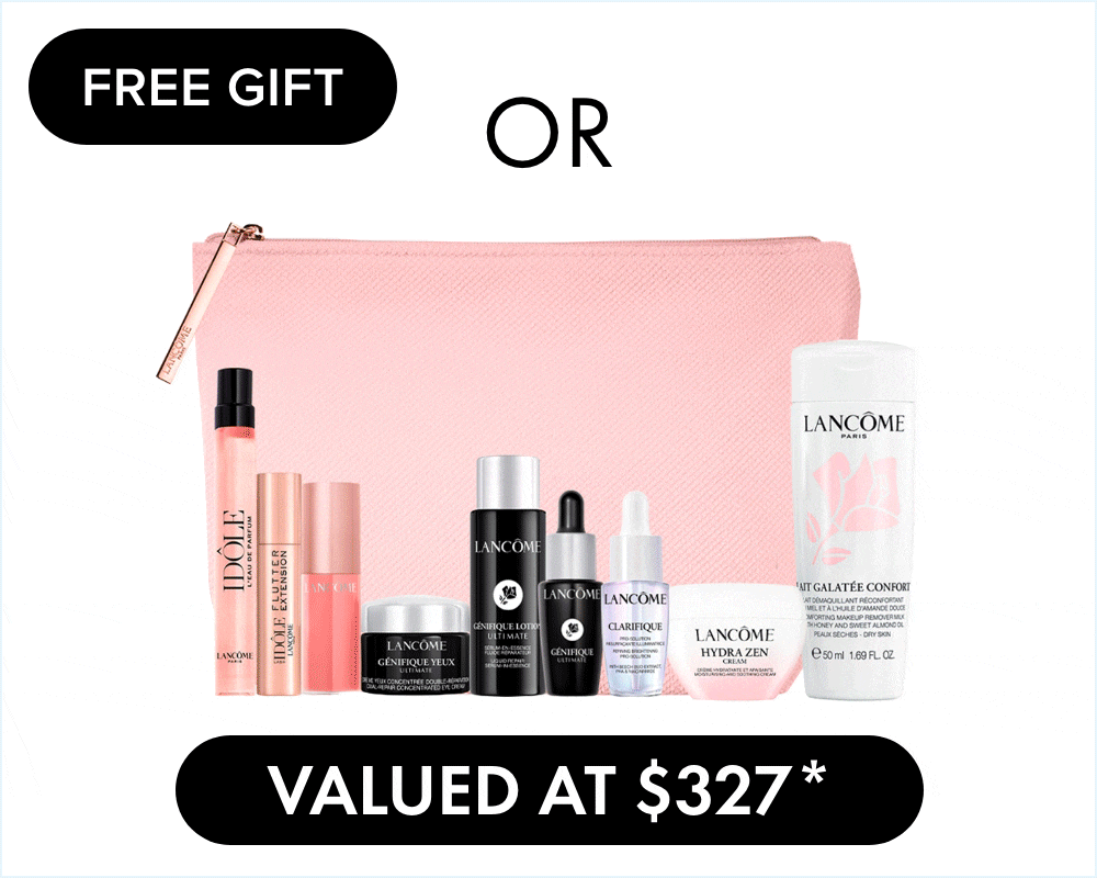FREE GIFT of your choice in either Lift or Glow when you spend $150 or more on Lancome PLUS FREE Absolue Gift when you spend $250 or more on Lancome