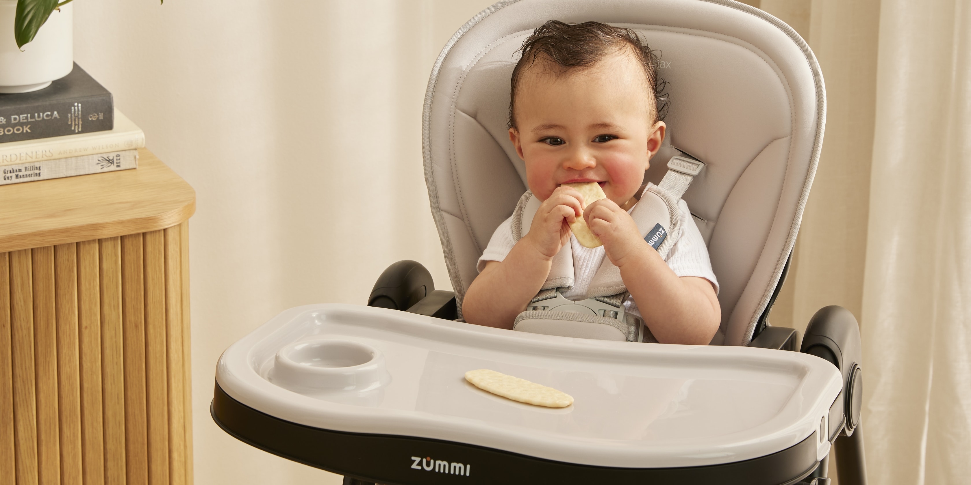 It is important your highchair has an adjustable 5-point safety harness to prevent your child from standing or slipping out of their highchair. The buckle should be easy for an adult to use but not the baby or other children in the house.