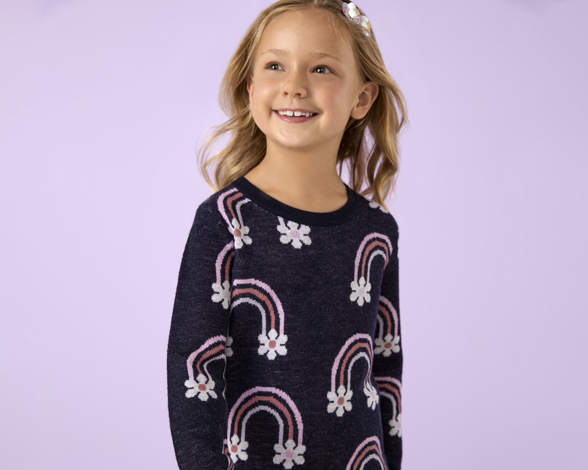 NORTH SOUTH MERINO FLOWER RAINBOWS MERINO JUMPER, SOFT PINK