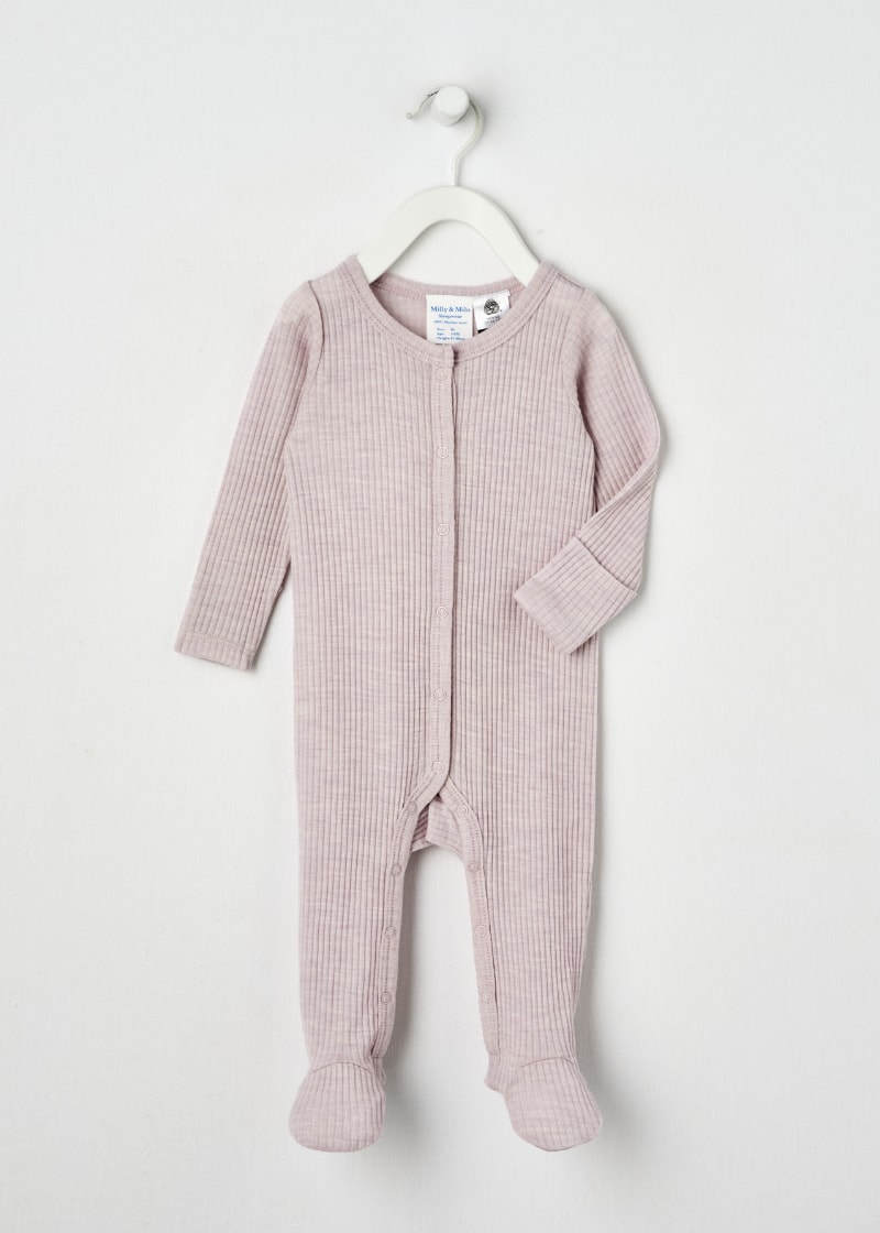Milly & Milo Merino 4*3 Rib Sleepsuit, Lilac