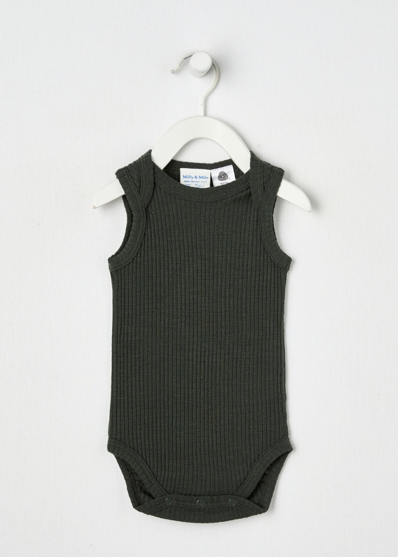 Milly & Milo Merino Rib Sleeveless Bodysuit, Bottle Green