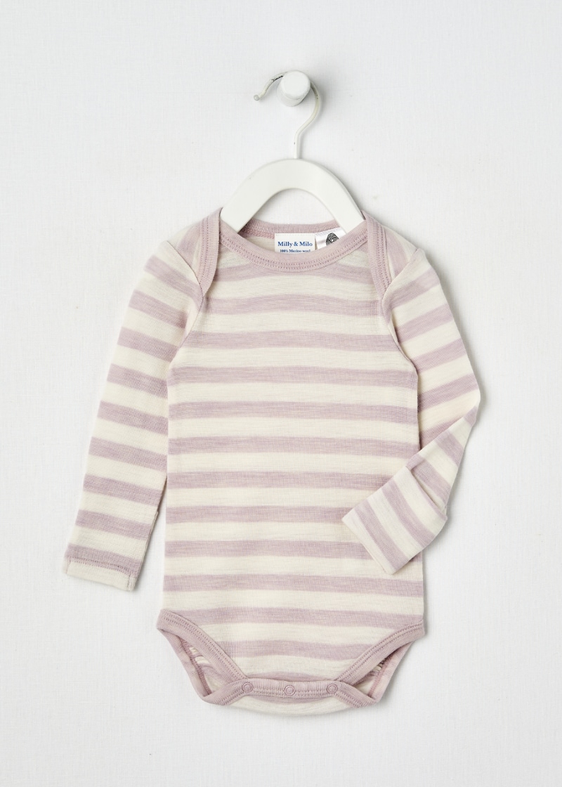 Milly & Milo Merino Stripe Long-Sleeve Bodysuit, Lilac