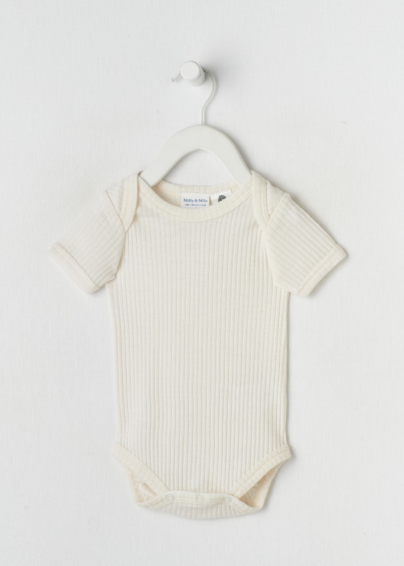 Milly & Milo Short-Sleeve Rib Bodysuit, Vanilla