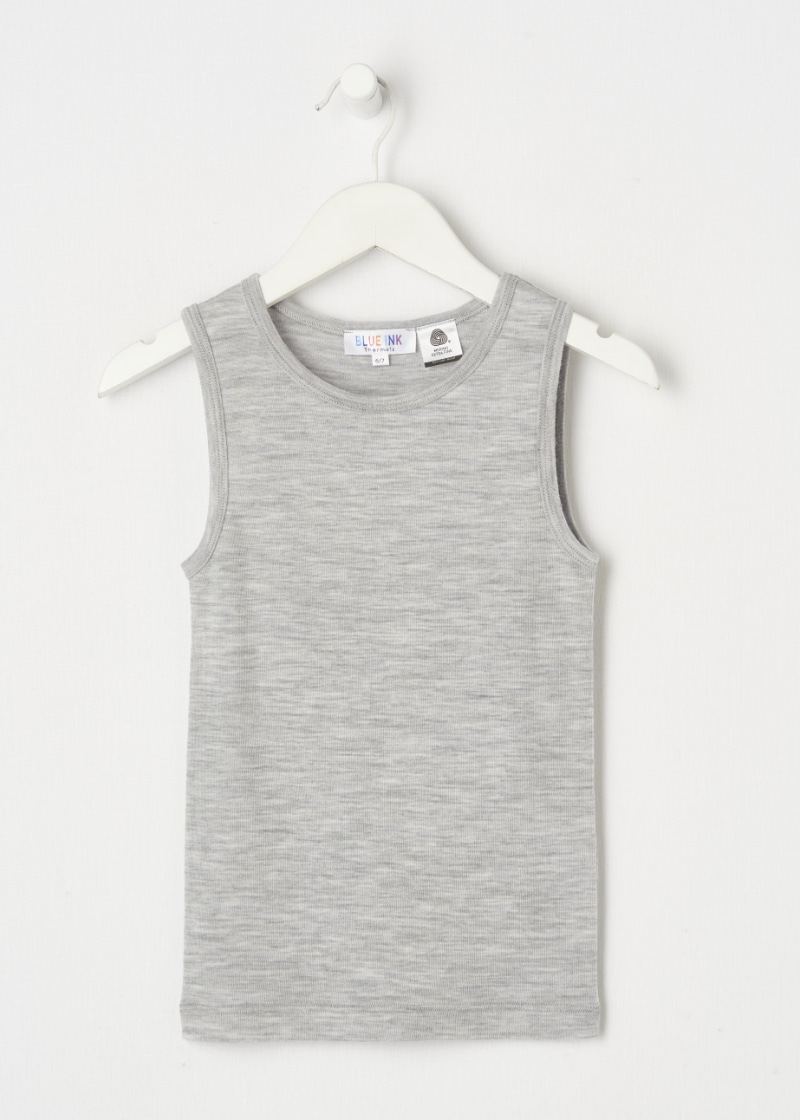 Blue Ink Merino Unisex Singlet, Grey Marl, 3-7