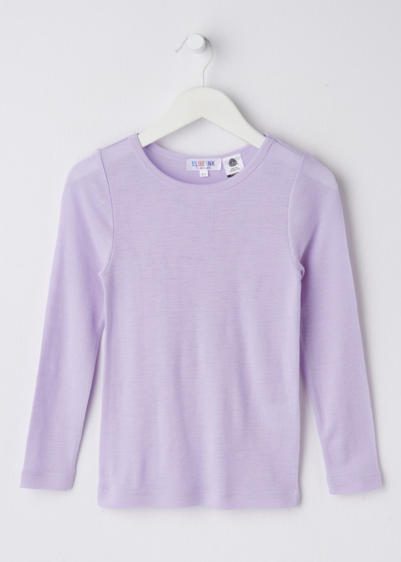 Blue Ink Merino Unisex Long Sleeve Top, Soft Lilac, 3-7