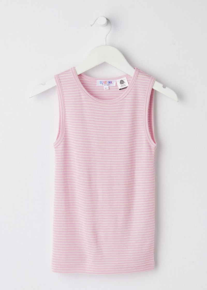 Blue Ink Merino Unisex Singlet, Dusty Pink & White Stripe, 3-7