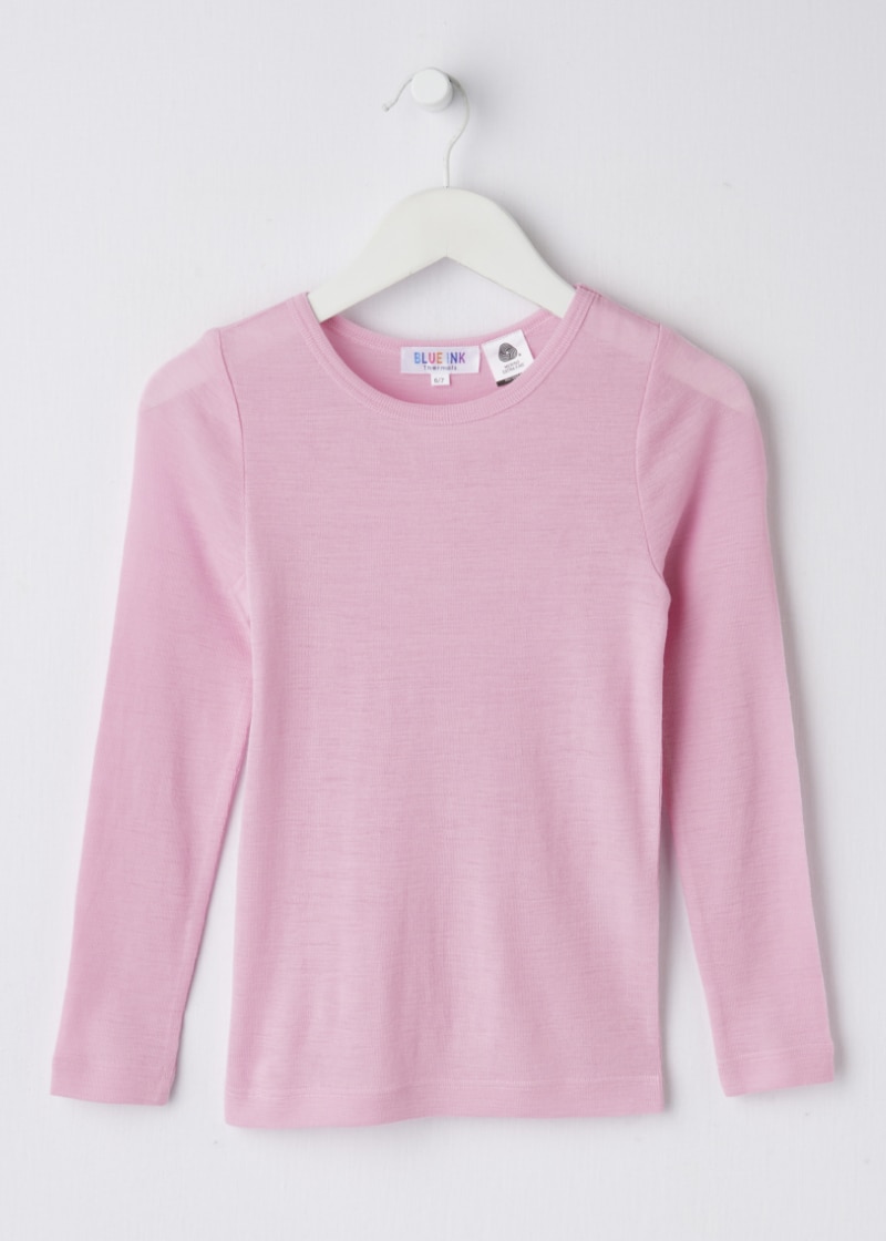 Blue Ink Merino Unisex Long Sleeve Top, Dusty Pink, 3-7