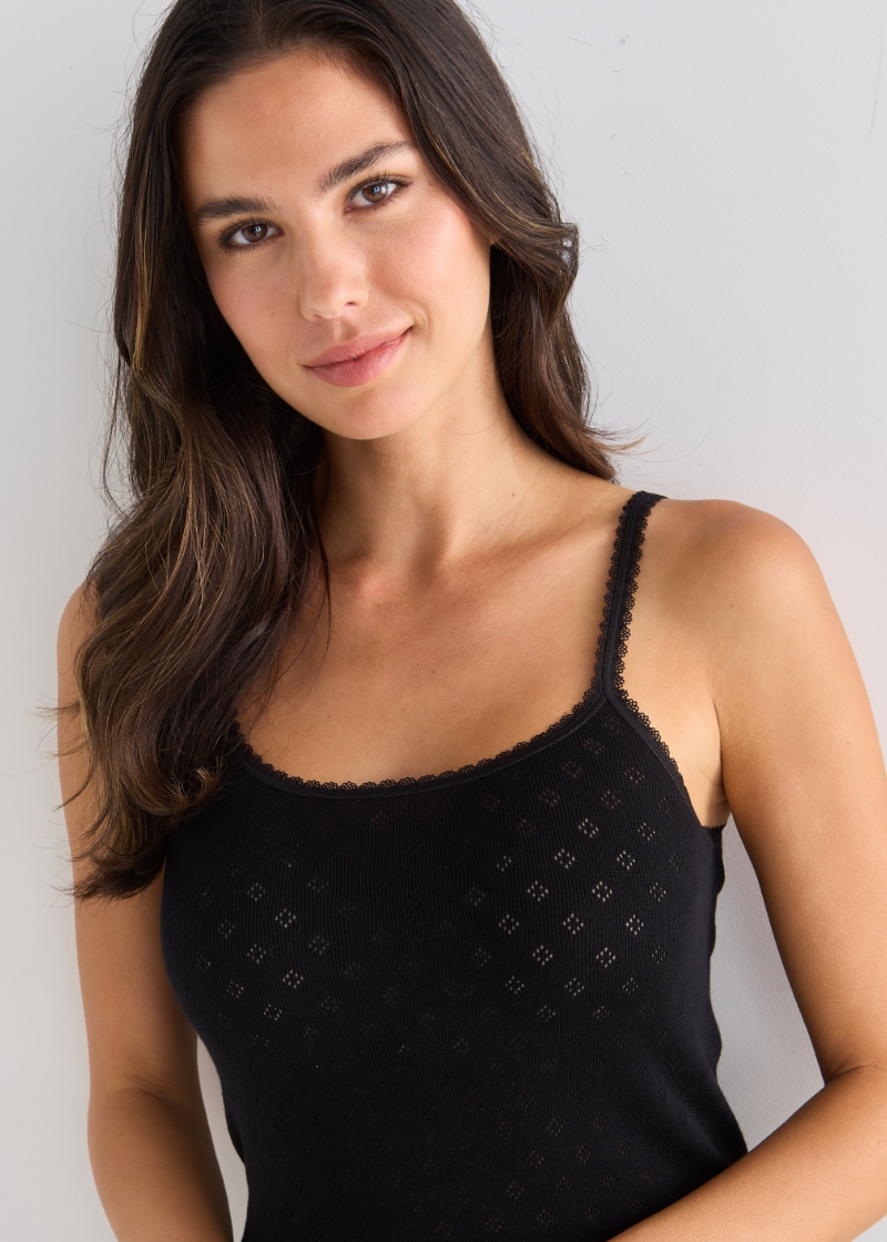 Lyric Thermals Harmony Cotton Pointelle Cami, Black