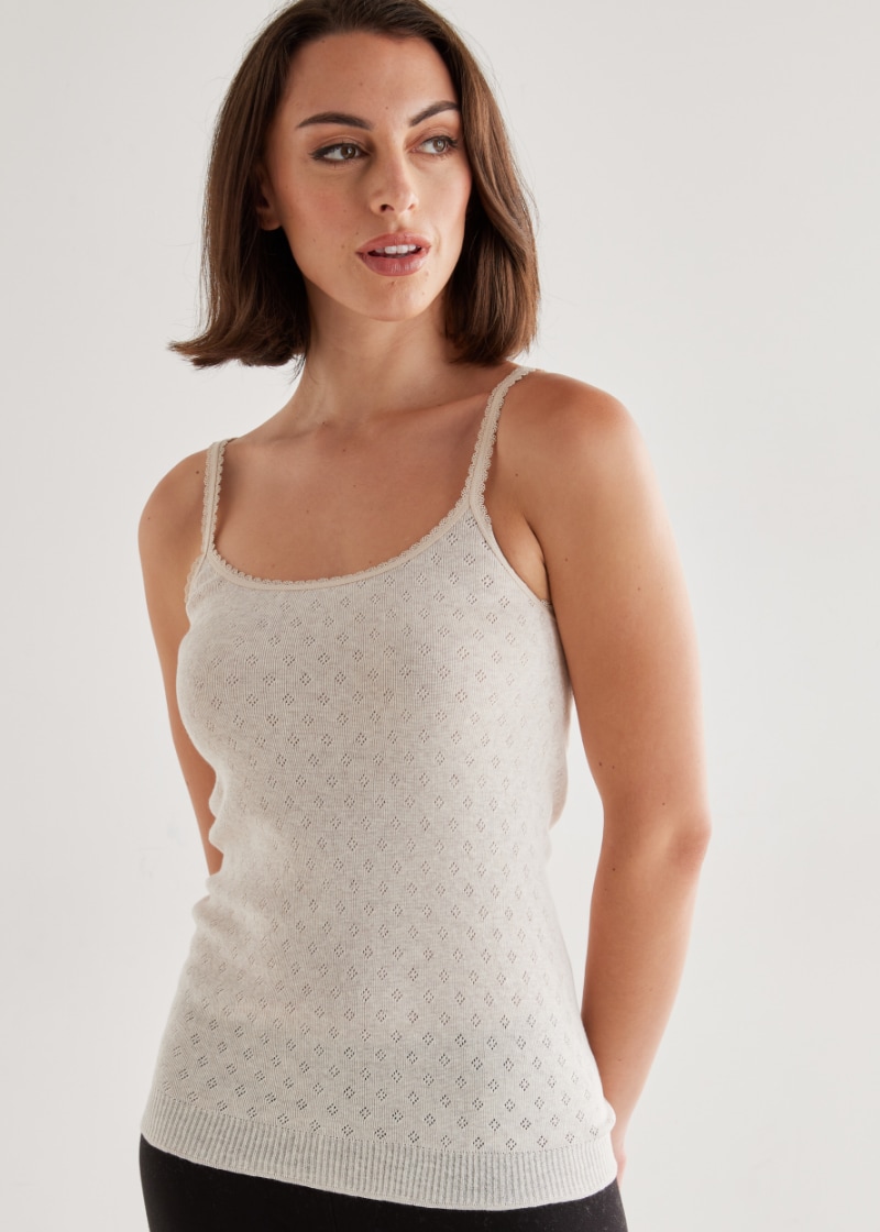 Lyric Thermals Harmony Cotton Pointelle Cami, Oatmeal