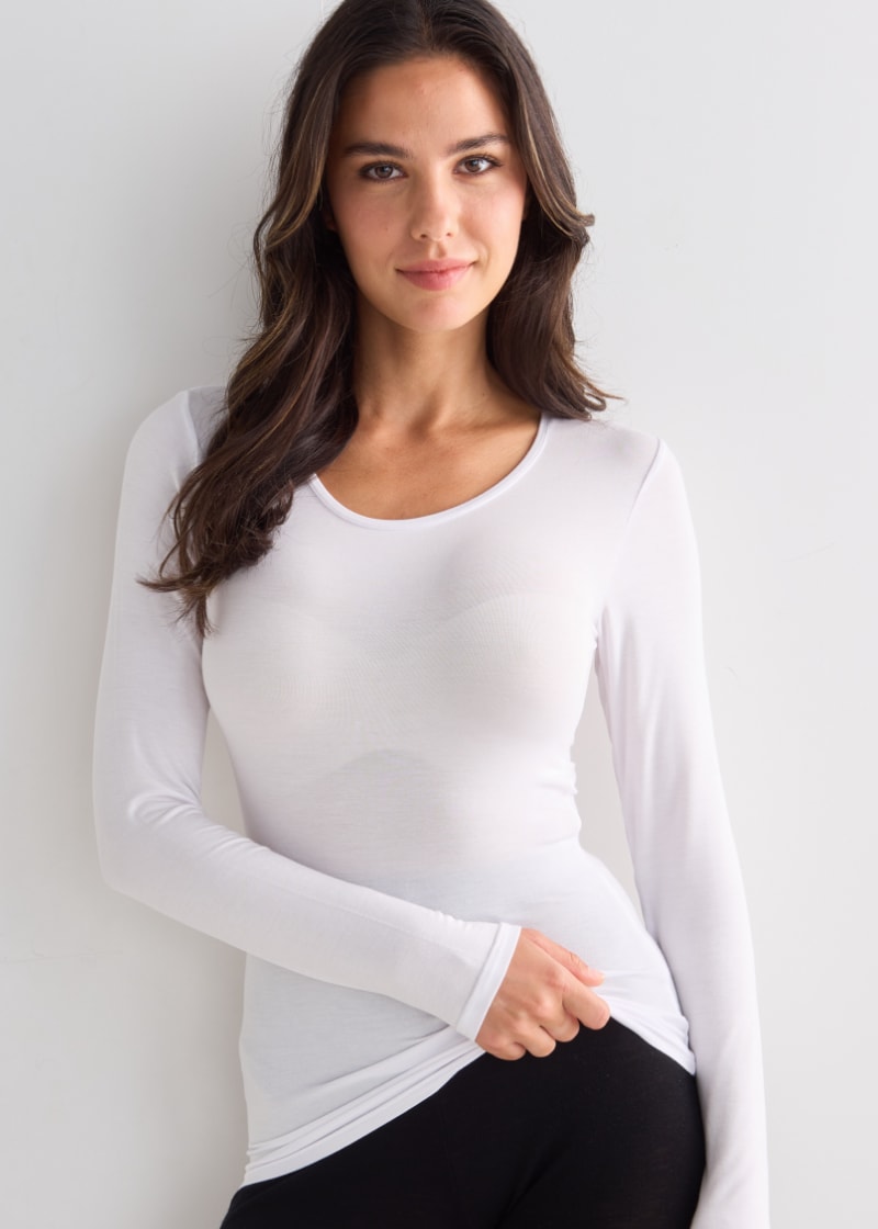 Lyric Thermals Mia Bamboo Long Sleeve Top, White