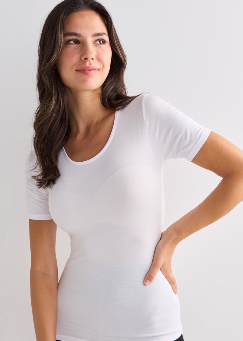 Lyric Thermals Mia Bamboo Short Sleeve Top, White