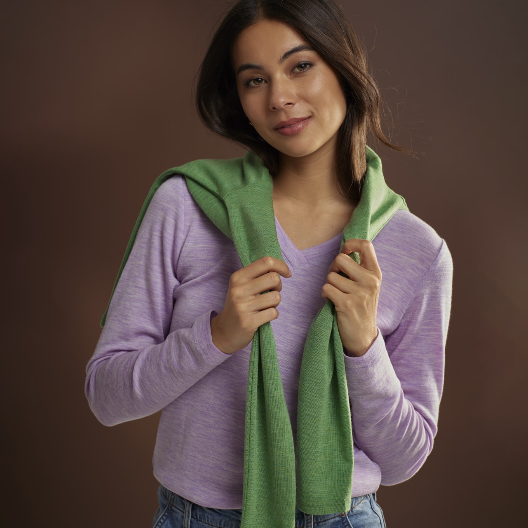 Blue Ink Merino Unisex Long Sleeve Top, Soft Lilac, 8-14